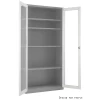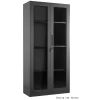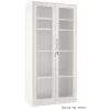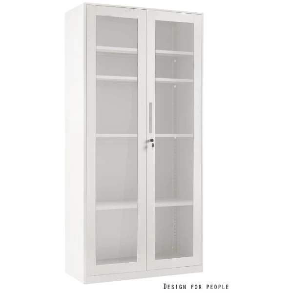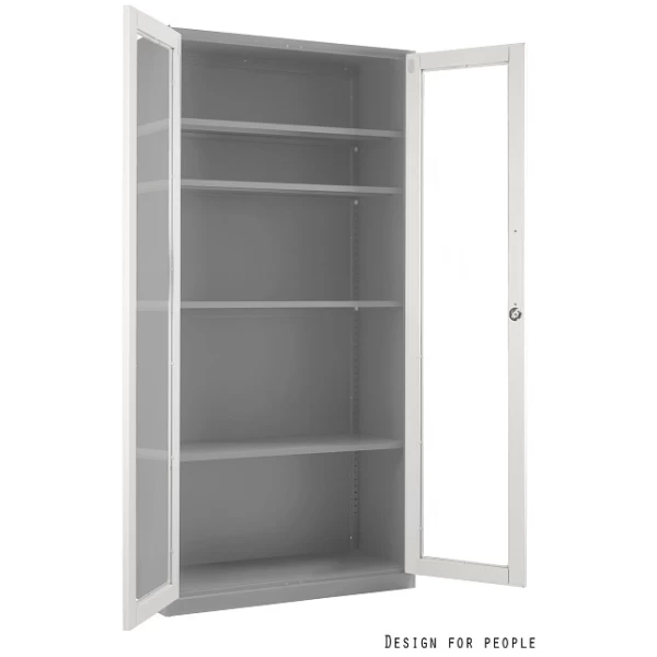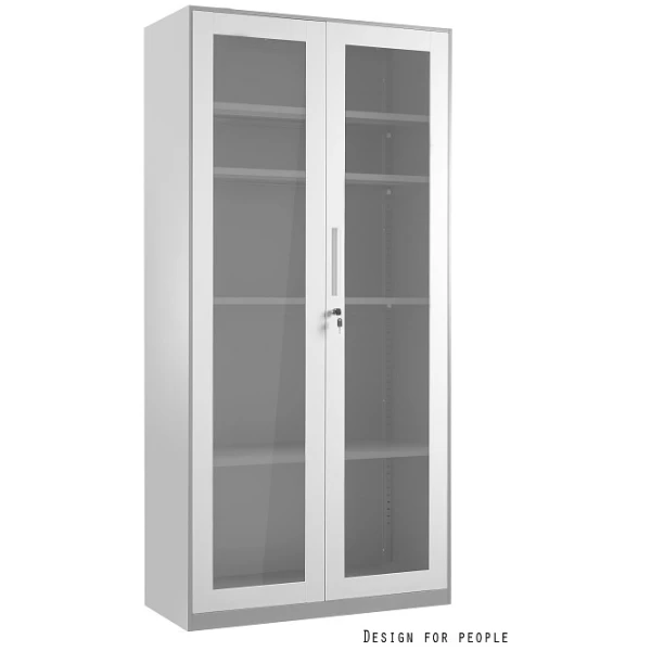 Dulap metalic robust, cu uși glisante din sticlă pentru vizibilitatea conținutului și acces facil. Construit din tablă de oțel de 0,5 mm (înainte de lăcuire) și finisat prin vopsire în câmp electrostatic, oferă durabilitate și rezistență la uzură. Rafturile reglabile permit configurarea spațiului, iar închiderea cu cheie asigură depozitarea în siguranță.