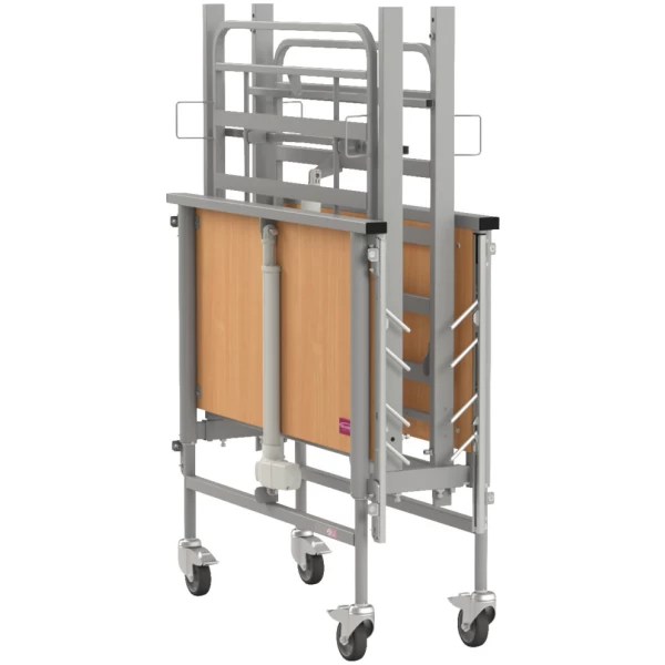 Construcția pe patru coloane oferă stabilitate sporită, iar poziția coborâtă a șinelor laterale facilitează accesul pacientului.